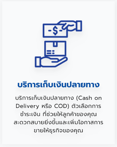 เรามุ่งมั่นตั้งใจเป็นผู้ให้บริการด้านโลจิสติกส์แบบครบวงจร ให้บริการสินค้าภายในประเทศ รวมถึงการให้บริการด้านคลังสินค้า กระจายสินค้า และบริการโลจิสติกส์ที่เกี่ยวข้อง รองรับความต้องการของลูกค้าทุกรูปแบบธุรกิจ มีศูนย์กระจายสินค้าทั่วประเทศ จึงทำให้บริการด้านการกระจายสินค้าได้อย่างรวดเร็ว ด้วยนวัตกรรม และเทคโนโลยีที่ทันสมัย จึงทำให้การบริหารจัดการขนส่งมีประสิทธิภาพ ตลอดจนติดตามสถานะพัสดุ โดยผู้เชี่ยวชาญที่มีประสบการณ์