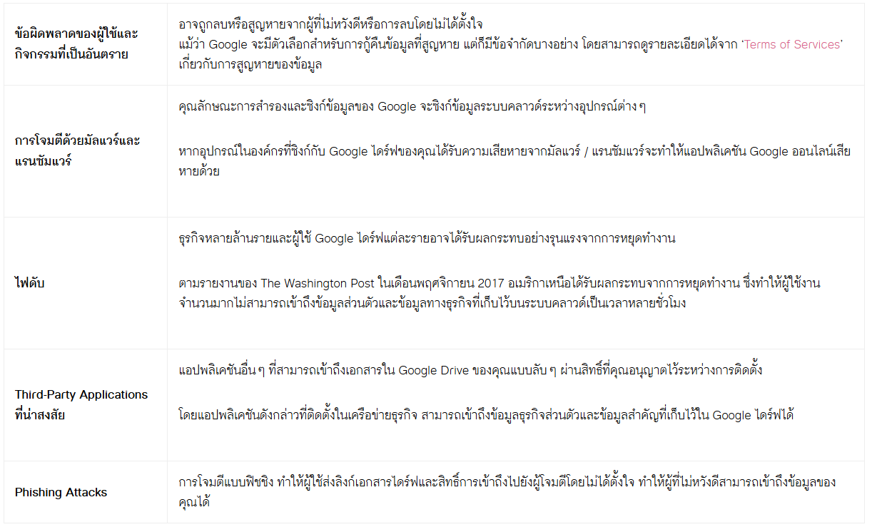 ข้อมูลที่เก็บไว้ใน Google Drive จะสูญหายได้หรือไม่
