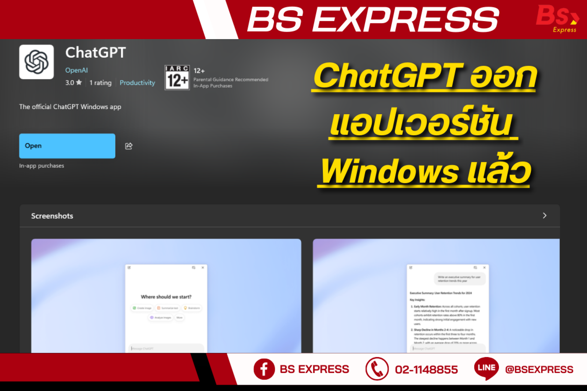 ChatGPT เวอร์ชัน Windows นี้ ยังอยู่ในสถานะทดสอบ รองรับเฉพาะผู้ใช้งานแบบเสียเงิน (Plus, Team, Enterprise, Edu) สามารถดาวน์โหลดได้ผ่าน Microsoft Store โดยบริษัทมีแผนให้แอปใช้งานได้ทุกคนภายในปีนี้