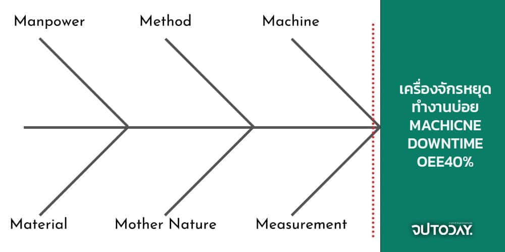 ตัวอย่าง : จากตัวอย่างบริษัทผลิตโลหะที่กำลังการผลิตขึ้นอยู่กับการใช้งานเครื่องจักรไฮดรอลิก แต่ปัญหา คือเครื่องจักรต้องหยุดทำงานเป็นประจำ (Machine Downtime) มีอัตรา OEE (Overall Equipment Effectiveness) มากถึง 40%