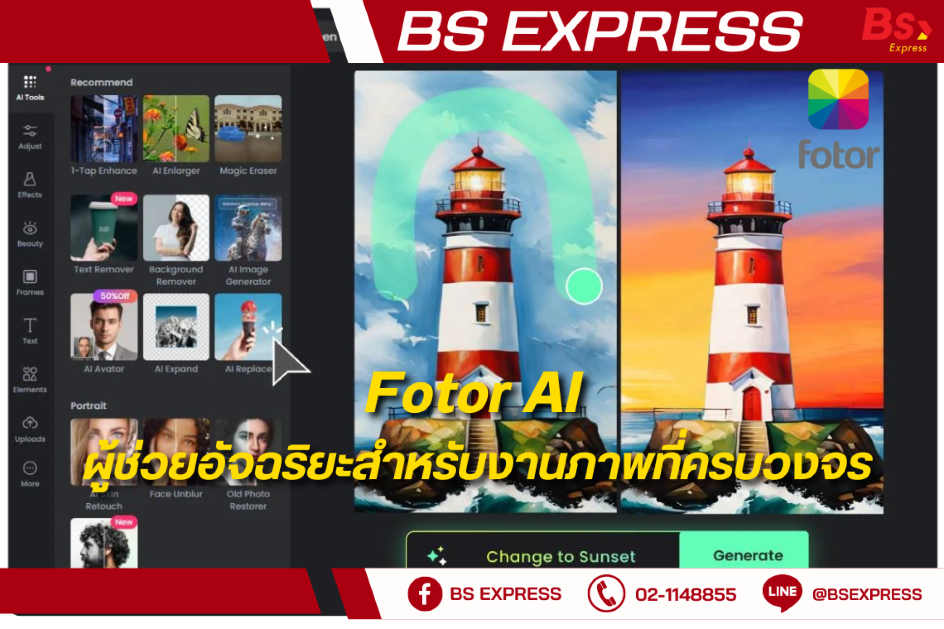Fotor AI คือ แพลตฟอร์มแก้ไขและสร้างภาพออนไลน์ที่ผสานรวมเทคโนโลยี AI เข้าไปในเครื่องมือต่างๆ ทำให้ผู้ใช้สามารถทำงานกับภาพได้อย่างรวดเร็ว ง่ายดาย และได้ผลลัพธ์ที่น่าทึ่ง ไม่ว่าจะเป็นการปรับปรุงภาพ การลบพื้นหลัง การสร้างภาพใหม่ หรือการสร้างงานออกแบบต่างๆ