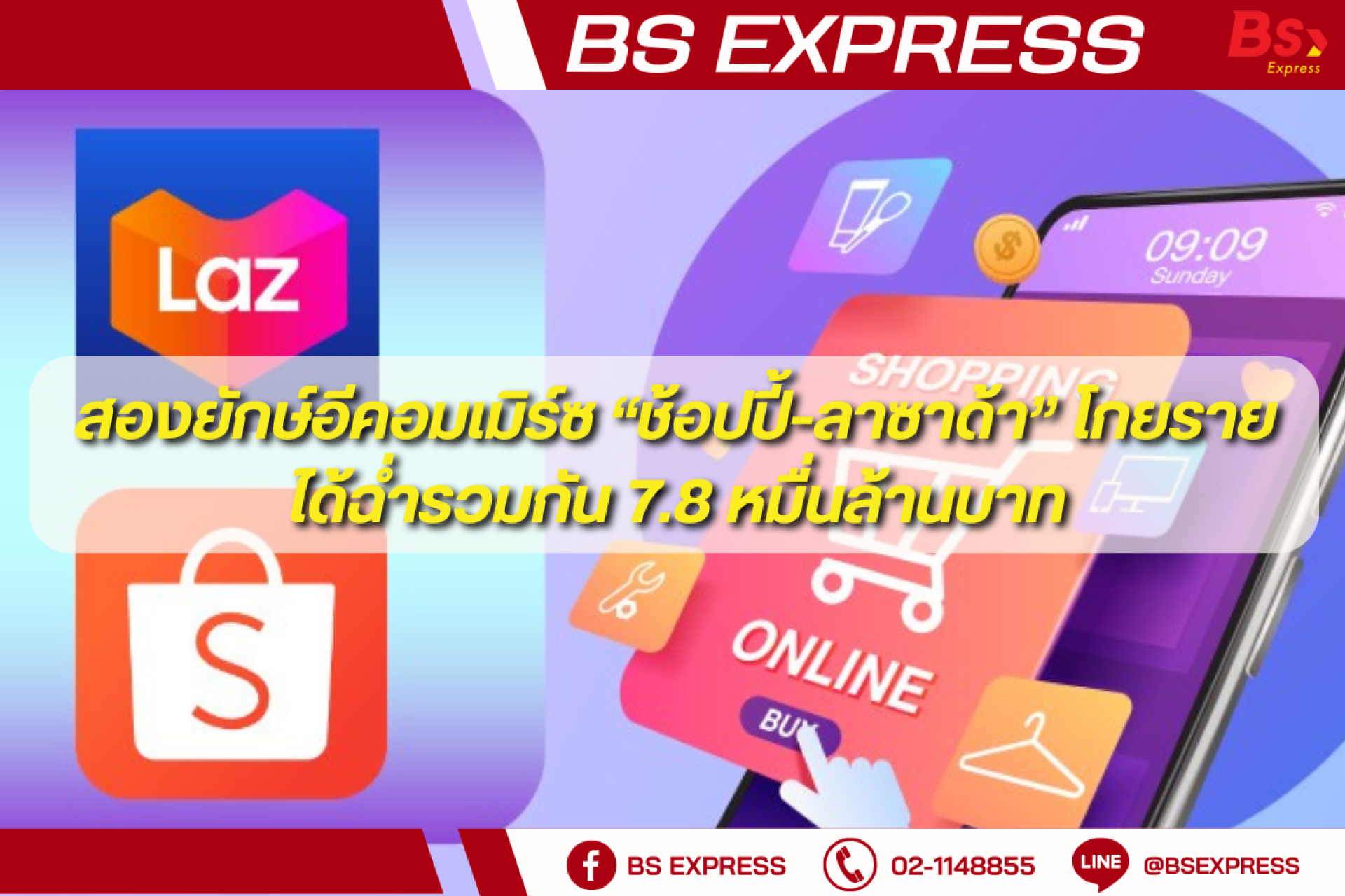 สองยักษ์อีคอมเมิร์ซ “ช้อปปี้-ลาซาด้า” โกยรายได้ฉ่ำรวมกัน 7.8 หมื่นล้านบาท