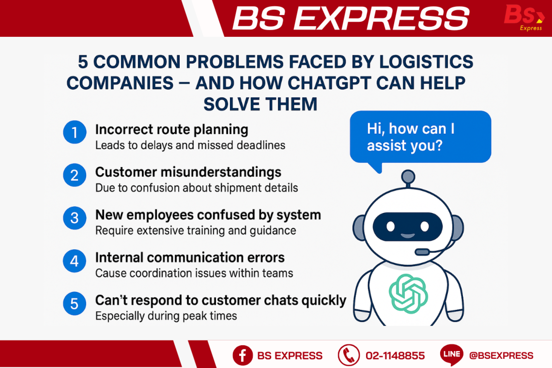 ปัญหาในธุรกิจขนส่งไม่ใช่เรื่องใหม่ แต่การมีผู้ช่วยอัจฉริยะอย่าง ChatGPT เข้ามาในระบบงาน ช่วยให้ทุกอย่างคล่องตัวมากขึ้น ลดข้อผิดพลาด เพิ่มประสิทธิภาพ และทำให้ลูกค้าได้รับประสบการณ์ที่ดียิ่งขึ้น