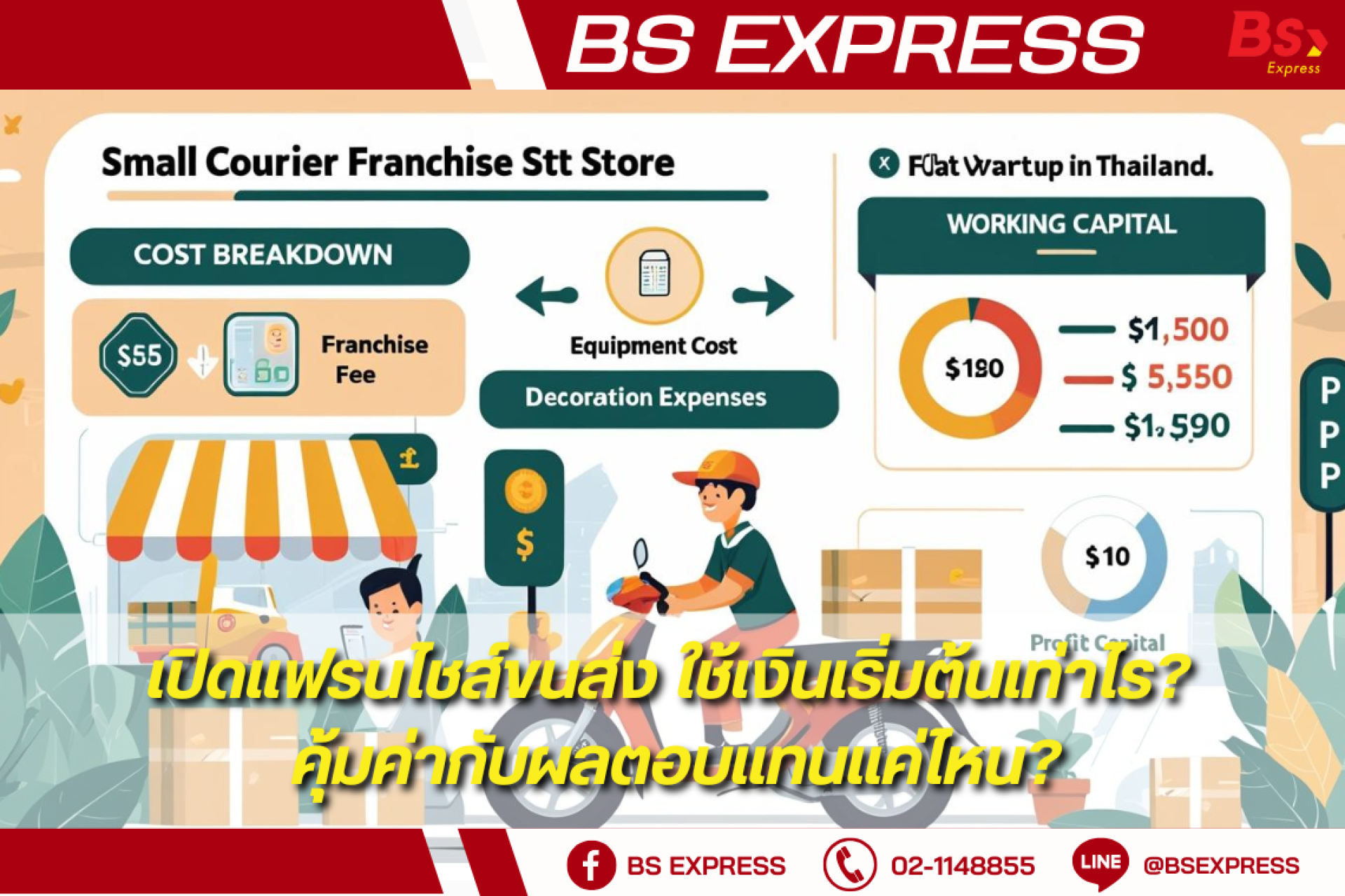 1.รายได้เฉลี่ยต่อเดือน: 30,000 80,000 บาท (ขึ้นกับทำเลและปริมาณพัสดุ)