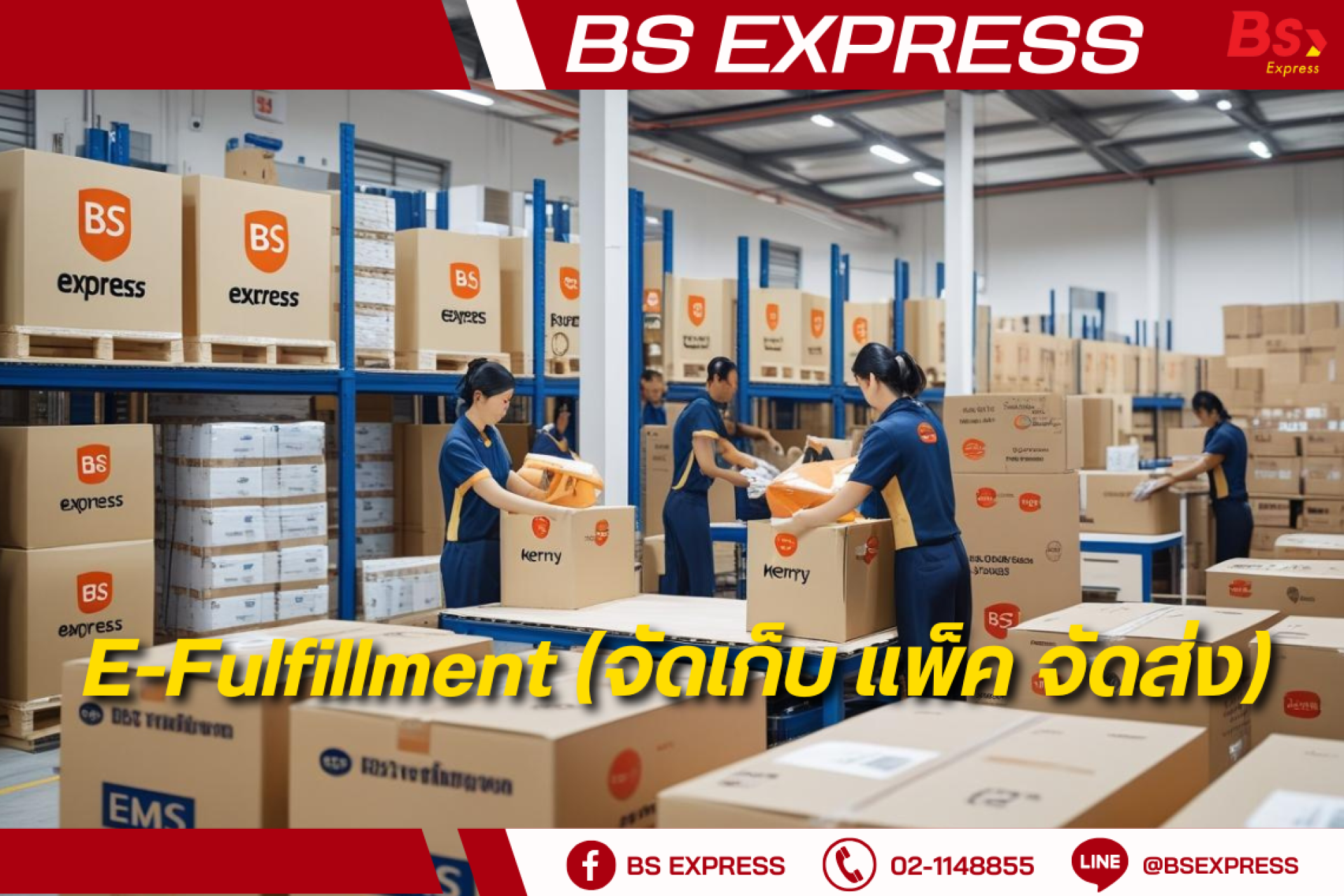 หากท่านสนใจบริการ E-Fulfillment และต้องการให้เราช่วยดูแลพัสดุของคุณแบบมืออาชีพ สามารถติดต่อสอบถามข้อมูลเพิ่มเติมได้ที่ 02-114-8855 หรือ 086-3039620