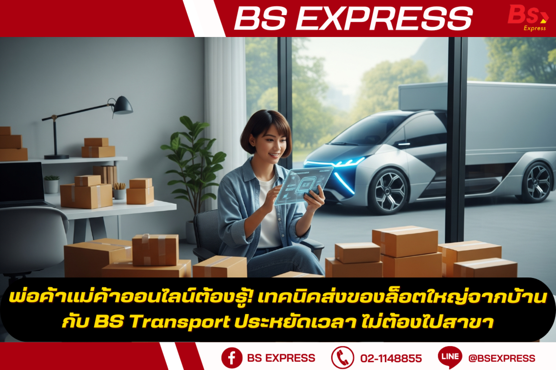 พ่อค้าแม่ค้าออนไลน์ต้องรู้! เทคนิคส่งของล็อตใหญ่จากบ้านกับ BS Transport ประหยัดเวลา ไม่ต้องไปสาขา