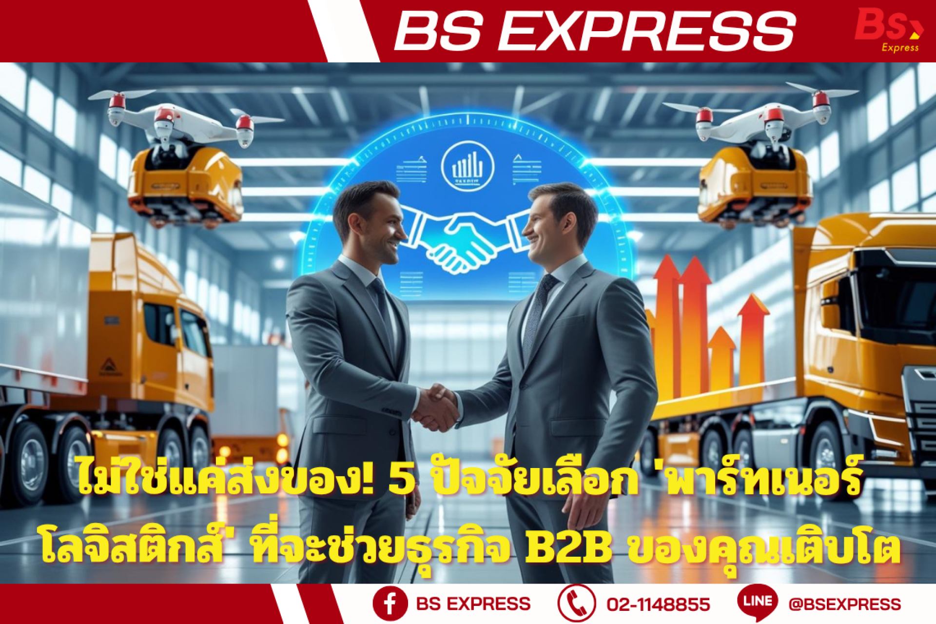 การเลือกพาร์ทเนอร์โลจิสติกส์คือการลงทุนเพื่ออนาคตของธุรกิจ การพิจารณาอย่างรอบด้านจากทั้ง 5 ปัจจัยนี้ จะช่วยให้คุณได้คู่คิดที่ไม่ได้ทำหน้าที่แค่ "ส่งของ" แต่ยังช่วยเพิ่มประสิทธิภาพ ลดต้นทุน และสนับสนุนการเติบโตของธุรกิจ B2B ของคุณได้อย่างแท้จริง เราไม่ได้มองว่าตัวเองเป็นเพียงผู้ขนส่ง แต่เรามุ่งมั่นที่จะเป็น "พาร์ทเนอร์โลจิสติกส์" ที่เข้าใจความต้องการของธุรกิจ B2B เราพร้อมมอบบริการที่เชื่อถือได้ ยืดหยุ่น และสนับสนุนการเติบโตของคุณในทุกเส้นทาง