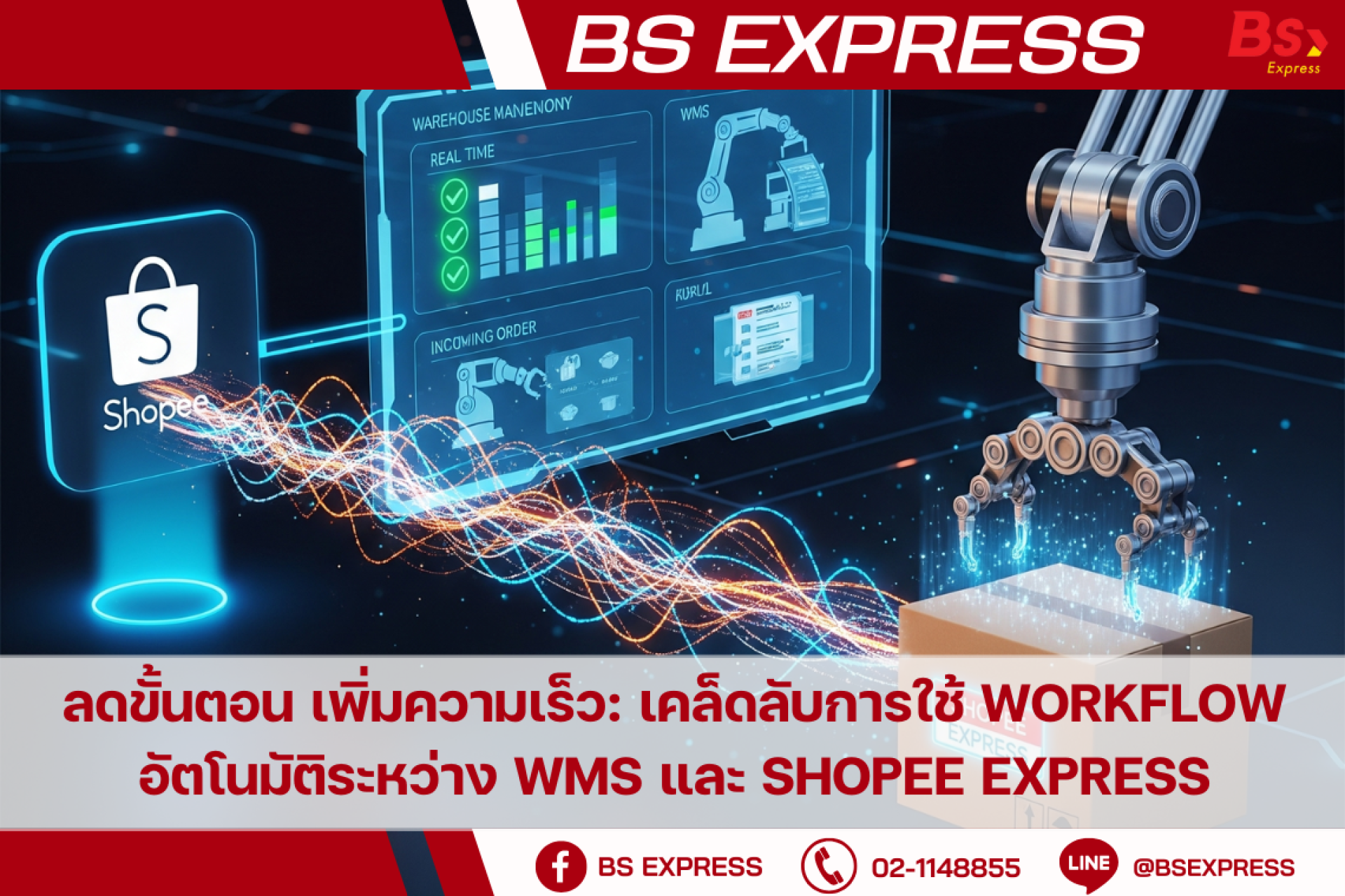 ลดขั้นตอน เพิ่มความเร็ว ให้ร้านค้า Shopee ของคุณเติบโตอย่างก้าวกระโดดด้วย Workflow อัตโนมัติ! ติดต่อ BS Express วันนี้!