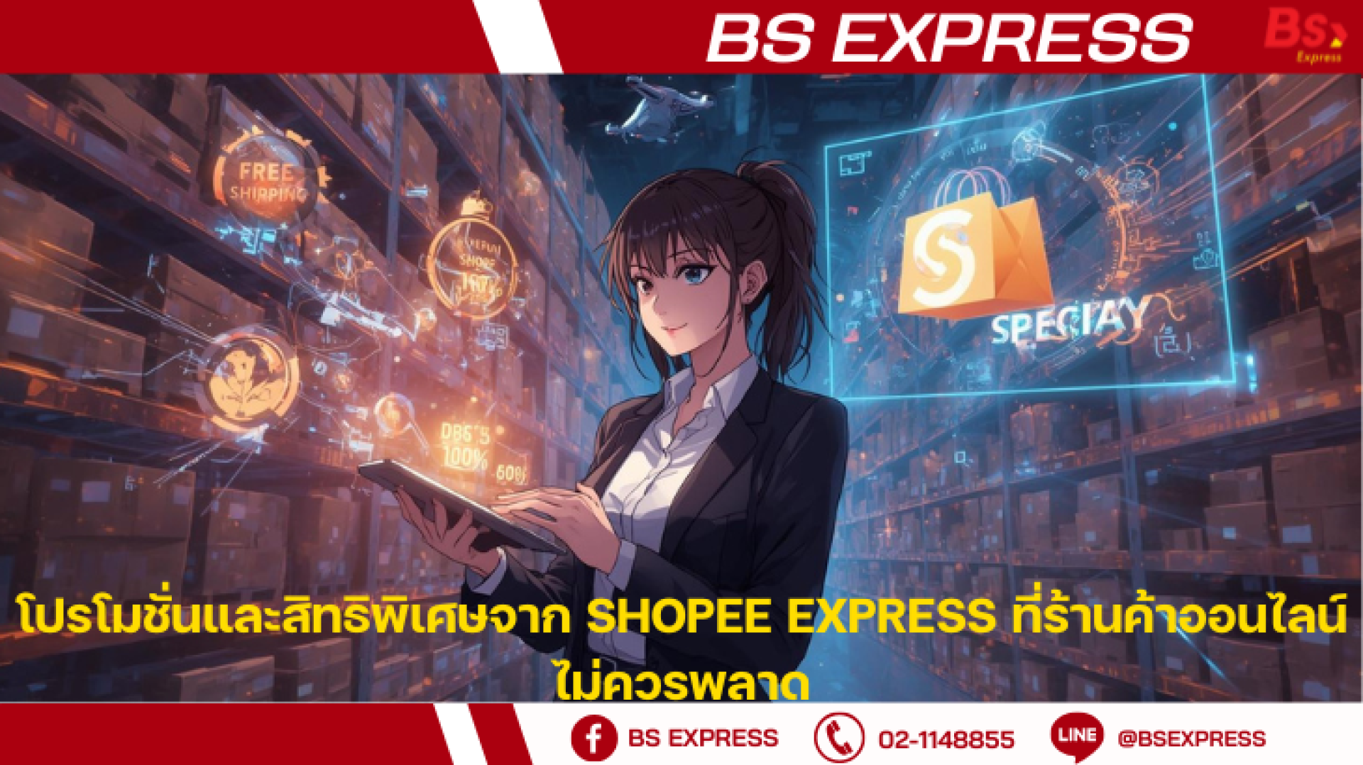 วันนี้ BS Express ซึ่งมีสำนักงานใหญ่อยู่ ณ สถานีขนส่งสินค้าพุทธมณฑลสาย 5 และเป็นผู้ให้บริการ Fulfillment ครบวงจร ขอพาคุณมาเจาะลึกถึงโปรโมชั่นและสิทธิพิเศษจาก Shopee Express ที่ร้านค้าออนไลน์ไม่ควรมองข้าม พร้อมชี้ให้เห็นว่าการผสานรวมกับบริการ Fulfillment ของเราจะช่วยให้คุณได้รับประโยชน์สูงสุดได้อย่างไร!