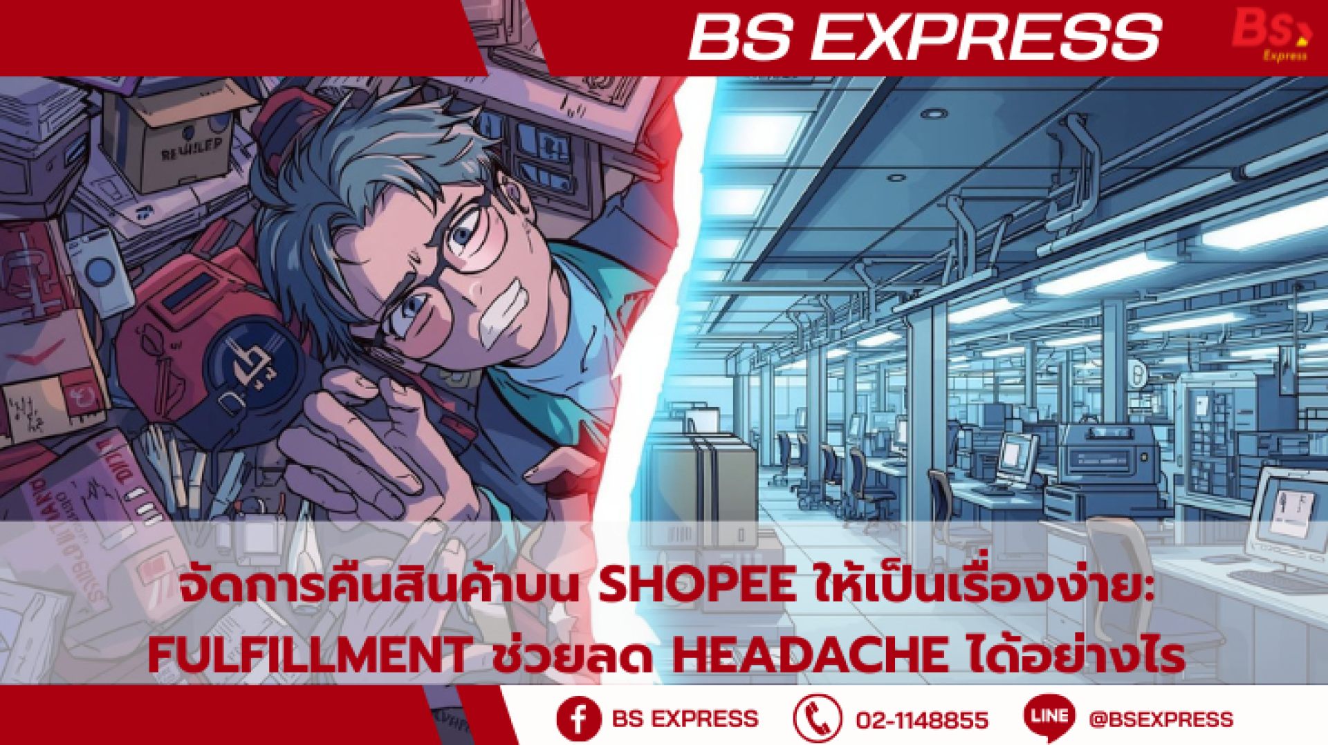 วันนี้ BS Express ซึ่งมีสำนักงานใหญ่อยู่ ณ สถานีขนส่งสินค้าพุทธมณฑลสาย 5 และเป็นผู้ให้บริการ Fulfillment ครบวงจร ขอเปิดเผยว่า Fulfillment สามารถเป็นฮีโร่ที่จะช่วยคุณ ลด Headache จากการจัดการสินค้าคืนบน Shopee ได้อย่างไร!