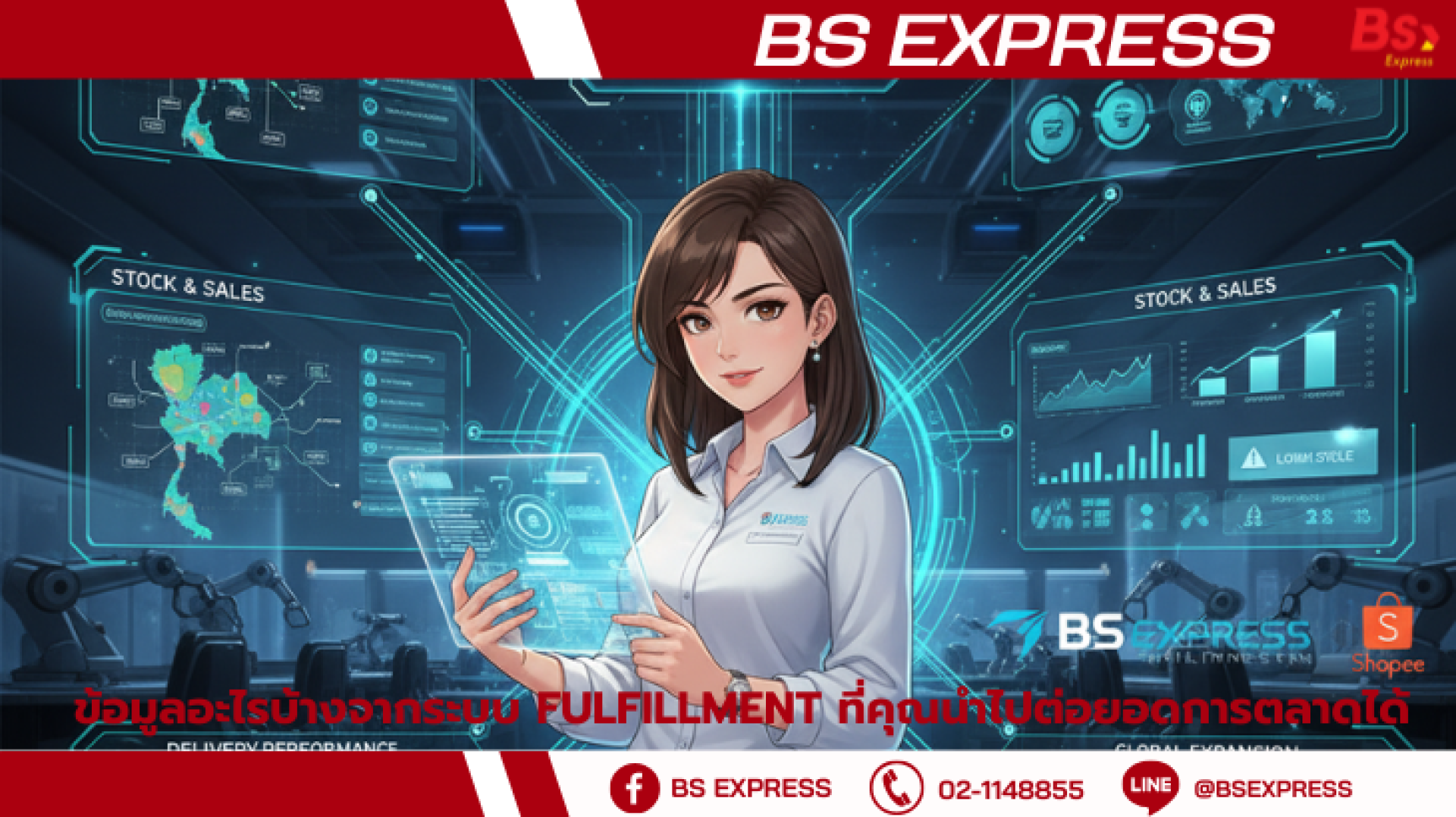 วันนี้ BS Express ซึ่งมีสำนักงานใหญ่อยู่ ณ สถานีขนส่งสินค้าพุทธมณฑลสาย 5 และเป็นผู้ให้บริการ Fulfillment ครบวงจร ขอเปิดเผยว่าข้อมูลอะไรบ้างจากระบบ Fulfillment ของเราที่คุณสามารถนำไปใช้ ต่อยอดการตลาด ได้อย่างมีประสิทธิภาพสูงสุด!