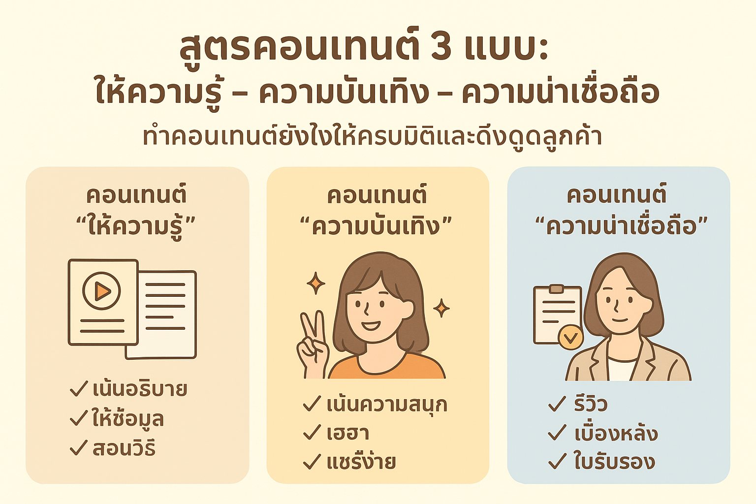สูตรคอนเทนต์ 3 แบบ: ให้ความรู้ ความบันเทิง ความน่าเชื่อถือ