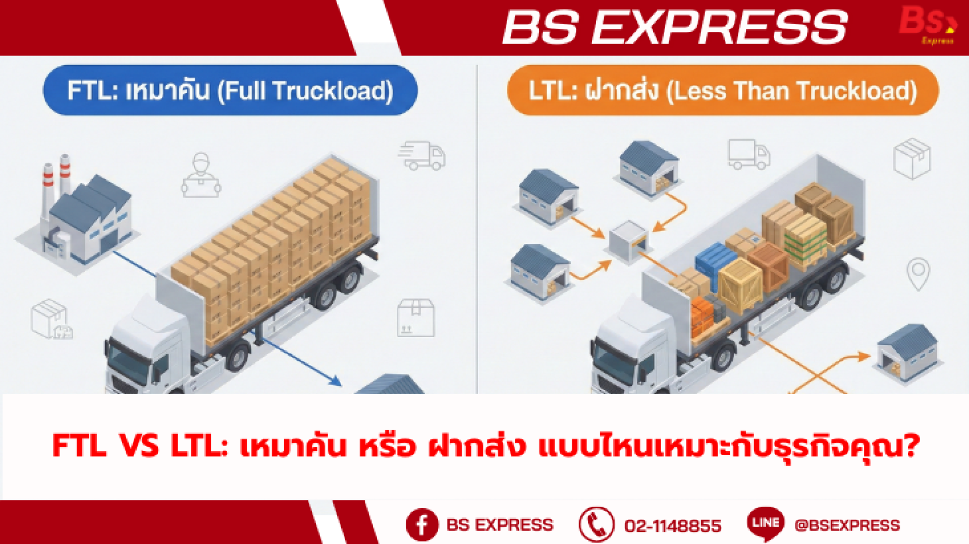 วันนี้ BS Express จะพามาเจาะลึกความแตกต่างระหว่างการขนส่งทั้ง 2 รูปแบบ เพื่อให้คุณเลือก "โซลูชัน" ที่คุ้มค่าและเหมาะสมกับธุรกิจของคุณที่สุดครับ