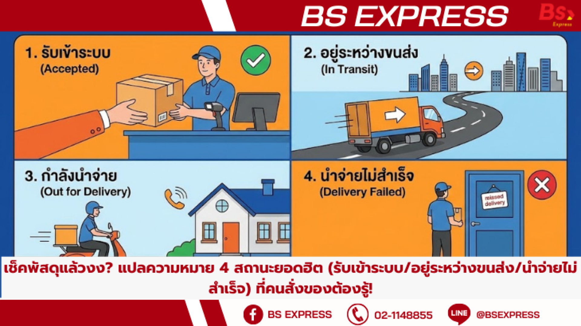 วันนี้ BS Express จะมาเป็นวุ้นแปลภาษา ไขรหัส 4 สถานะพัสดุยอดฮิต ให้เข้าใจกันแบบง่ายๆ