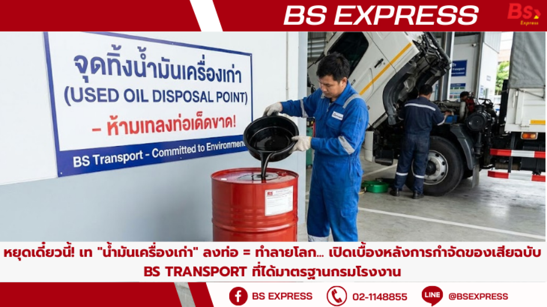 หยุดเดี๋ยวนี้! เท "น้ำมันเครื่องเก่า" ลงท่อ = ทำลายโลก... เปิดเบื้องหลังการกำจัดของเสียฉบับ BS Transport ที่ได้มาตรฐานกรมโรงงาน