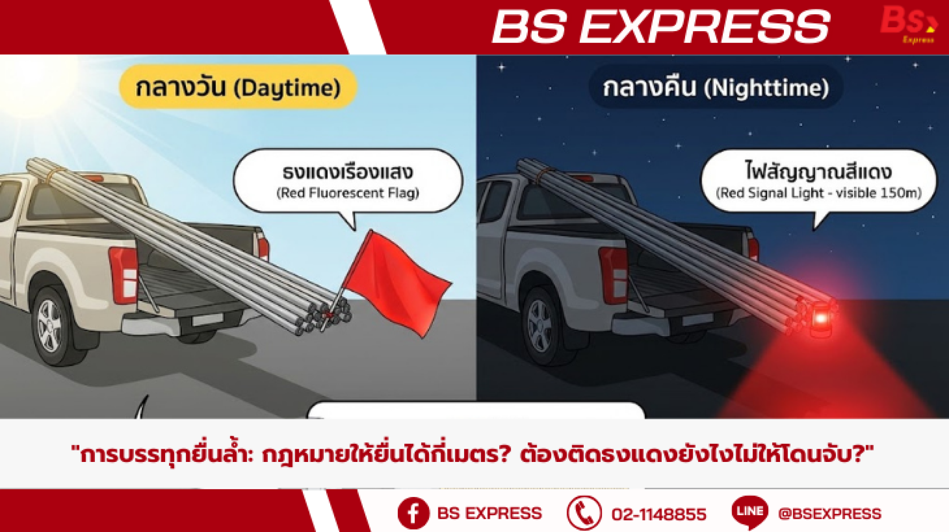 ขนของยาวเกินตัวรถต้องรู้! กฎหมายให้ "บรรทุกยื่นล้ำ" ได้กี่เมตร? และวิธีติดธงแดงให้ถูกต้อง ไม่ให้โดนจับ