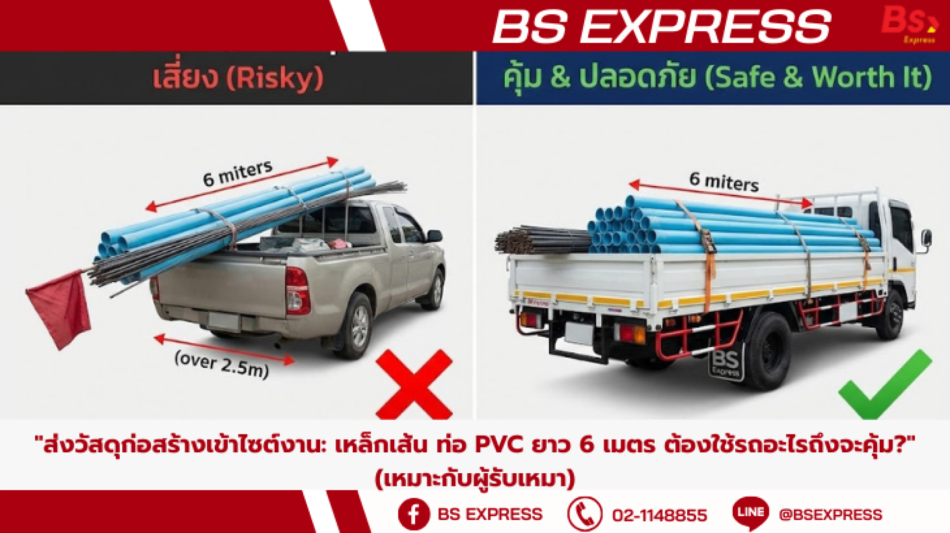 แล้วตกลง... ถ้าต้องขนของยาว 6 เมตร เข้าไซต์งาน ใช้รถอะไรถึงจะคุ้มค่าที่สุด? วันนี้ BS Express มีคำตอบมาเทียบให้เห็นกันชัดๆ ค่ะ