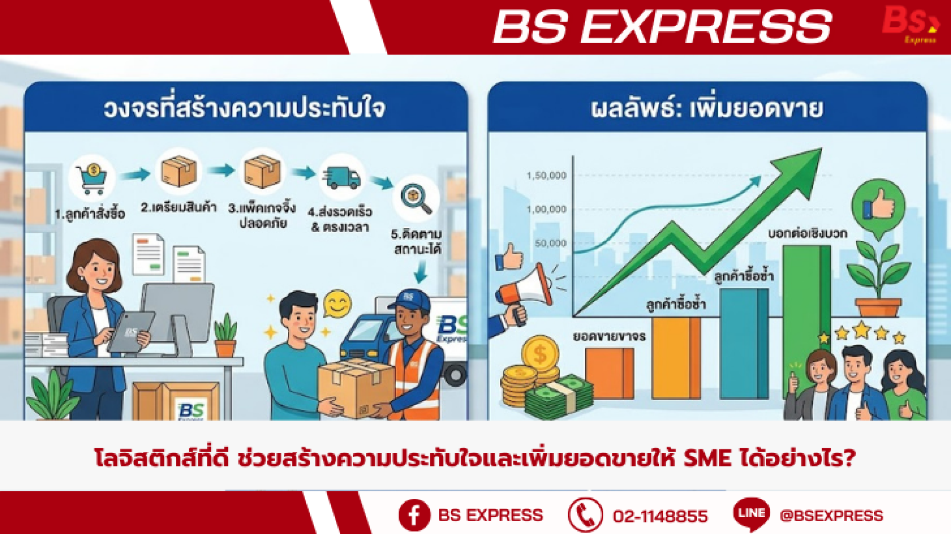 "โลจิสติกส์" ไม่ใช่แค่การเอาของขึ้นรถแล้วขับไปส่ง แต่คือ "ด่านสุดท้าย" ที่จะชี้วัดว่าลูกค้าจะประทับใจแบรนด์ของคุณหรือไม่ วันนี้ BS Express จะพามาดูว่า โลจิสติกส์ที่ดีจะกลายเป็น "อาวุธลับ" ช่วยเพิ่มยอดขายให้ธุรกิจ SME ได้อย่างไรบ้างคะ