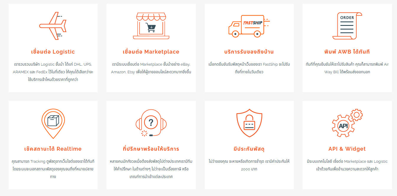 บริษัท FASTSHIP จดทะเบียนเมื่อ วันที่ 22 ก.พ. 2561 ด้วยทุนจดทะเบียน 1,000,000 บาท คือแพลตฟอร์มขนส่งระหว่างประเทศสำหรับธุรกิจC-Commerce ที่ช่วยเชื่อมต่อและเข้าถึงบริการส่งสินค้าไปต่างประเทศกับบริษัท Logistic ขั้นนำได้สะดวกมากขึ้น และมีการบริการที่ครอบคลุมถึง 8 ด้าน อธิเช่น เชื่อมต่อ Logistic และ Marketplace รวมถึงมีบริการรับของถึงบ้านอีกด้วย FastShip เราคือ Platform ขนส่งระหว่างประเทศสำหรับผู้ประกอบการออนไลน์และบุคคลทั่วไปที่ต้องการส่งพัสดุ เรามีระบบเชื่อมต่อที่ทำให้คุณเข้าถึงบริษัท Logistic ชั้นนำ ด้วยราคาที่ถูกกว่า พร้อมการเชื่อมต่อ Marketplace ที่จะทำให้ผู้ขายออนไลน์สะดวกมากขึ้น และมีบริการเข้ารับพัสดุถึงบบ้านทั่วไทย