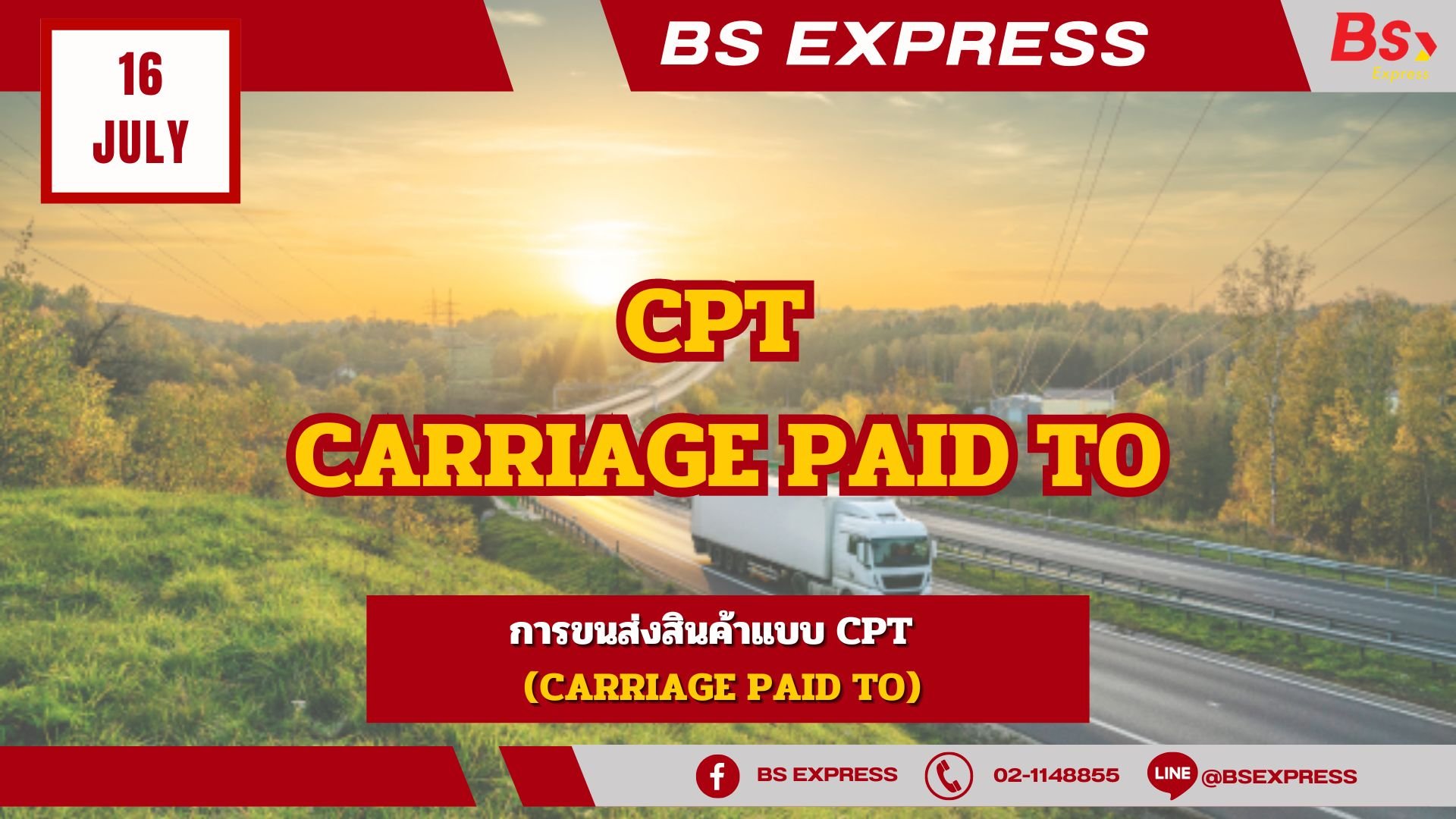 CPT ย่อมาจาก Carriage Paid To เป็นเงื่อนไขการค้าระหว่างประเทศประเภทหนึ่ง ที่ระบุถึงความรับผิดชอบในการส่งมอบสินค้าและค่าใช้จ่ายที่เกี่ยวข้อง