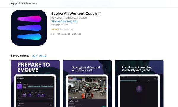 Evolve AI ปฏิวัติประสบการณ์การฝึกส่วนตัวโดยนำเสนอการฝึกสอนการออกกำลังกายและโภชนาการที่ขับเคลื่อนด้วย AI แบบไดนามิกบนอุปกรณ์มือถือของคุณโดยตรง เมื่อเริ่มต้นด้วย Evolve AI ผู้ใช้จะได้รับการประเมินเบื้องต้นผ่านแบบสอบถามการเริ่มต้นใช้งาน ซึ่ง AI จะใช้เพื่อสร้างแผนการออกกำลังกายส่วนบุคคล แผนนี้ไม่คงที่ แต่จะปรับเปลี่ยนแบบเรียลไทม์ตามประสิทธิภาพ ความคิดเห็น และความคืบหน้าของผู้ใช้ แอปนี้เชี่ยวชาญด้านการฝึกความแข็งแกร่ง โดยใช้การกำหนดช่วงเวลาแบบบล็อกเพื่อออกแบบแผนการออกกำลังกายแบบกำหนดเองที่ตอบสนองความต้องการของแต่ละบุคคล นอกจากนี้ Evolve AI ยังดูแลด้านโภชนาการโดยการสร้างและปรับเป้าหมายสารอาหารหลักเพื่อเสริมการฝึกทางกายภาพ การมุ่งเน้นที่ทั้งการออกกำลังกายและโภชนาการทำให้มั่นใจได้ถึงแนวทางการออกกำลังกายแบบองค์รวม โดยมีเป้าหมายเพื่อให้ได้ผลลัพธ์ไม่ว่าเป้าหมายจะเป็นการลดน้ำหนัก เพิ่มกล้ามเนื้อ หรือปรับปรุงสุขภาพโดยรวม
