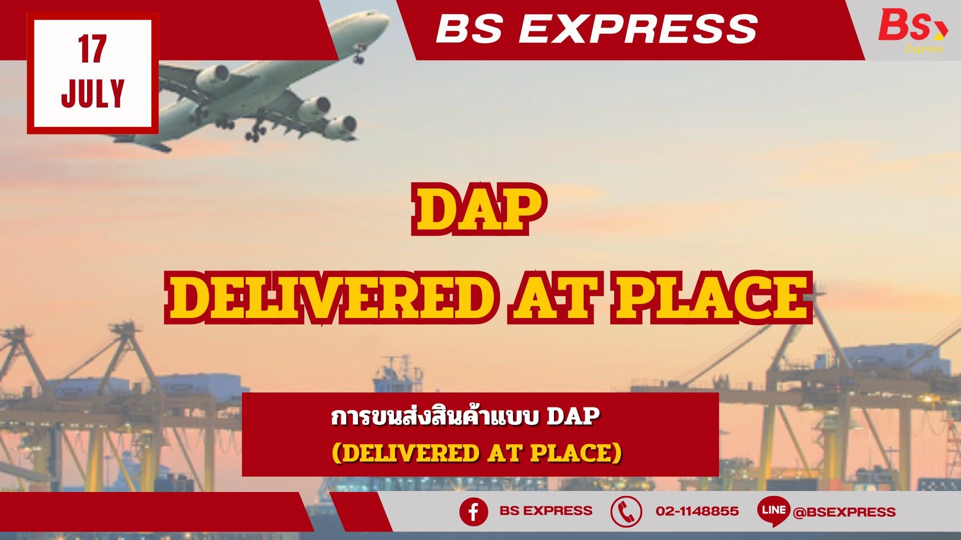 DAP หมายถึง ส่งมอบ ณ สถานที่ หมายความว่า ผู้ขายมีหน้าที่ส่งมอบสินค้าให้กับผู้ซื้อ ณ สถานที่ที่ระบุไว้ ซึ่งอาจจะเป็นท่าเรือ สนามบิน สถานีรถไฟ หรือสถานที่อื่นๆ ที่กำหนดไว้ ผู้ขายจะต้องรับผิดชอบค่าใช้จ่ายในการขนส่งสินค้าไปยังสถานที่ปลายทาง แต่ไม่รวมค่าใช้จ่ายในการขนถ่ายสินค้าลงจากยานพาหนะ เมื่อสินค้าถูกวางไว้บนยานพาหนะที่สถานที่ปลายทาง ถือว่าผู้ขายได้ส่งมอบสินค้าให้กับผู้ซื้อเรียบร้อยแล้ว ผู้ซื้อมีหน้าที่รับผิดชอบค่าใช้จ่ายในการขนถ่ายสินค้าลงจากยานพาหนะ ค่าธรรมเนียมท่าเรือ ภาษีนำเข้า และค่าขนส่งสินค้าจากสถานที่ปลายทางไปยังคลังสินค้า