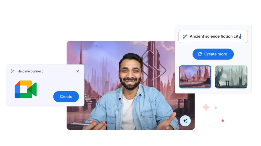 เพื่อให้การประชุมออนไลน์มีความเหมาะสมมากยิ่งขึ้น Gemini จะช่วยสร้างภาพพื้นหลังการประชุมได้ตามต้องการ อีกทั้ง Gemini ยังมาพร้อมกับฟีเจอร์การปรับแต่งหน้าจอการประชุม ไม่ว่าจะเป็นการปรับแต่งแสง เสียง ตำแหน่ง และคุณภาพของการประชุม และอื่นๆ