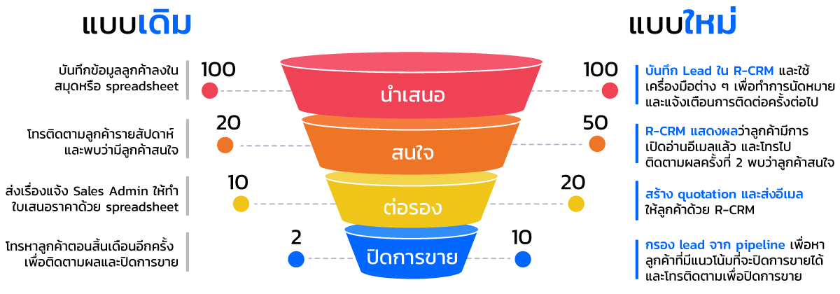 ระบบ CRM คือ ระบบสำหรับบริหารทีมขาย ที่จะช่วยให้ธุรกิจของคุณสามารถจัดการงานขายในแต่ละขั้นตอนของ Sales Pipeline ได้ดีกว่าเดิม ติดตามการขายได้อย่างมีประสิทธิภาพ ระบบมีความยืดหยุ่นสูงโดยสามารถปรับแต่งให้มีความเหมาะสมกับธุรกิจ เพื่อช่วยเพิ่มโอกาสปิดการขายที่มากขึ้น