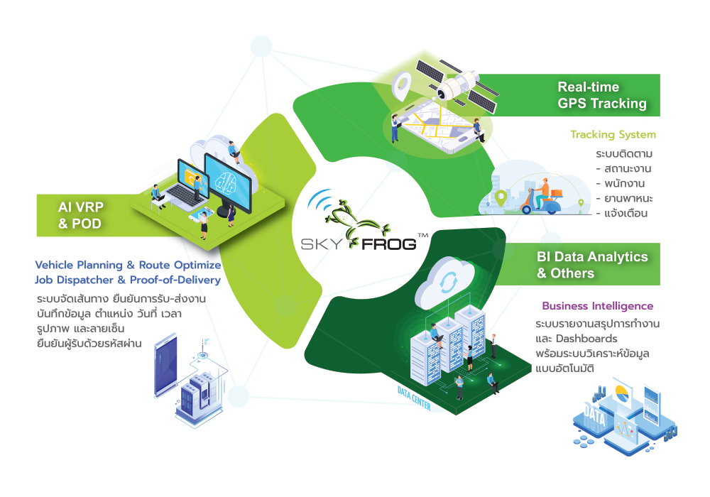 - SKYFROG Business Intelligence (BI) ช่วยให้ธุรกิจสามารถมองเห็นภาพรวมของการขนส่งได้อย่างมีประสิทธิภาพ