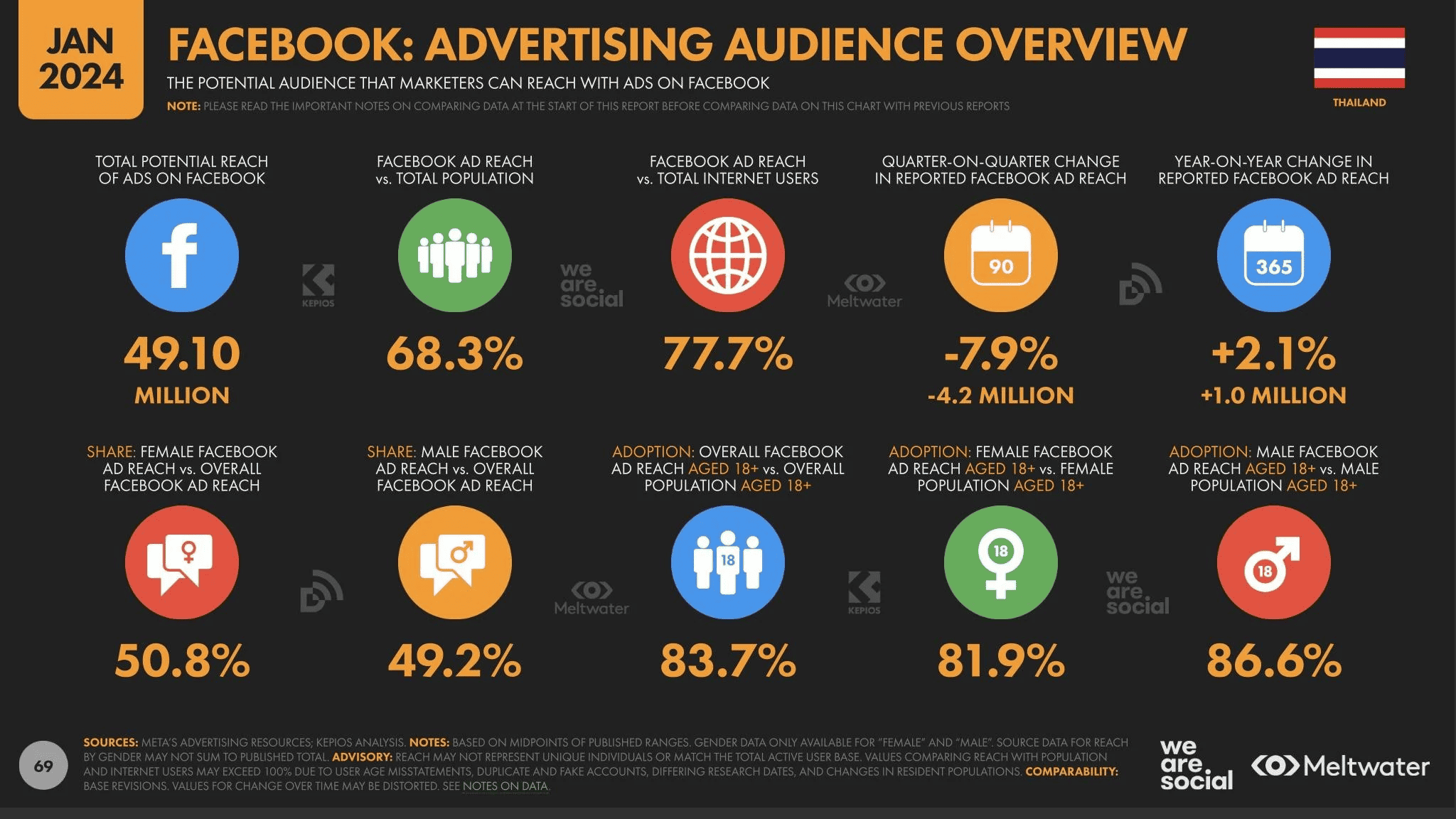 ขอบคุณข้อมูล: https://thedigitaltips.com/blog/facebook/facebook-statistics-in-thailand-update-2024/