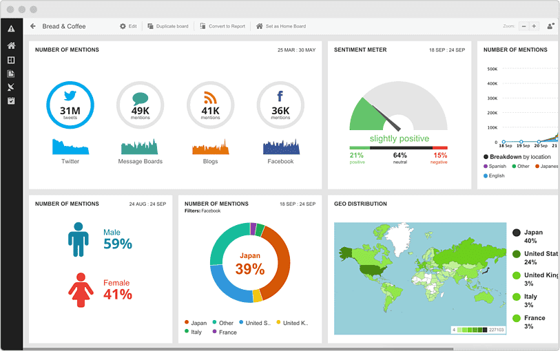 นอกเหนือจากการใช้ CRM เพื่อติดตามความเคลื่อนไหวของลูกค้าแล้ว การใช้ Social Listening Tool ก็ช่วยให้คุณจัดการเรื่องนี้ได้ง่ายขึ้นเช่นกัน เพียงใส่ Keyword ที่เราสนใจหรือต้องการ ก็จะมีการดึงจากสื่อ Social Media ทุกแพลตฟอร์ม ข้อมูลสำคัญที่ได้จะทำให้คุณเห็นได้ชัดเจนเลยว่าในปัจจุบันลูกค้าของคุณมีความพึงพอใจต่อสินค้าหรือบริการของคุณอย่างไรบ้าง ถ้าเสียงที่ได้รับอยู่ในเกณฑ์ดี คุณก็ต้องรักษาและพัฒนาธุรกิจให้ดีขึ้น แต่ถ้ามีเสียงตอบรับด้านลบ ก็ต้องคิดกลยุทธ์ในการแก้ไขปัญหาเพื่อให้ลูกค้ามีความพึงพอใจสูงสุดต่อธุรกิจของคุณ