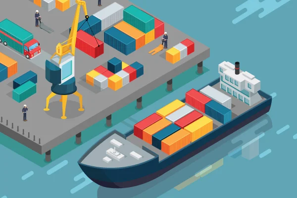 การมาถึงที่ท่าเรือ: สินค้าจะมาถึงที่ศูนย์กลางการขนส่งซึ่งจะถูกนำลงจากเรือแรก