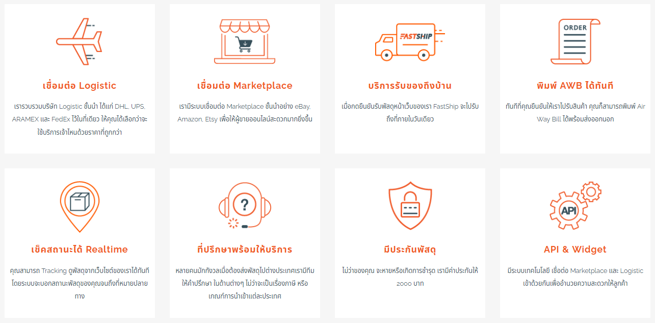 FastShip เราคือ Platform ขนส่งระหว่างประเทศสำหรับผู้ประกอบการออนไลน์และบุคคลทั่วไปที่ต้องการส่งพัสดุ เรามีระบบเชื่อมต่อที่ทำให้คุณเข้าถึงบริษัท Logistic ชั้นนำ ด้วยราคาที่ถูกกว่า พร้อมการเชื่อมต่อ Marketplace ที่จะทำให้ผู้ขายออนไลน์สะดวกมากขึ้น และมีบริการเข้ารับพัสดุถึงบบ้านทั่วไทย บริษัท FASTSHIP จดทะเบียนเมื่อ วันที่ 22 ก.พ. 2561 ด้วยทุนจดทะเบียน 1,000,000 บาท คือแพลตฟอร์มขนส่งระหว่างประเทศสำหรับธุรกิจC-Commerce ที่ช่วยเชื่อมต่อและเข้าถึงบริการส่งสินค้าไปต่างประเทศกับบริษัท Logistic ขั้นนำได้สะดวกมากขึ้น และมีการบริการที่ครอบคลุมถึง 8 ด้าน อธิเช่น เชื่อมต่อ Logistic และ Marketplace รวมถึงมีบริการรับของถึงบ้านอีกด้วย