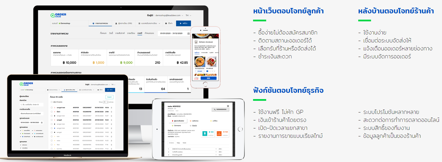 Orderkrub เป็นแพลตฟอร์มออนไลน์สำหรับร้านค้าออนไลน์ ช่วยให้ร้านค้าสามารถ สร้างเว็บไซต์ร้านอาหารออนไลน์