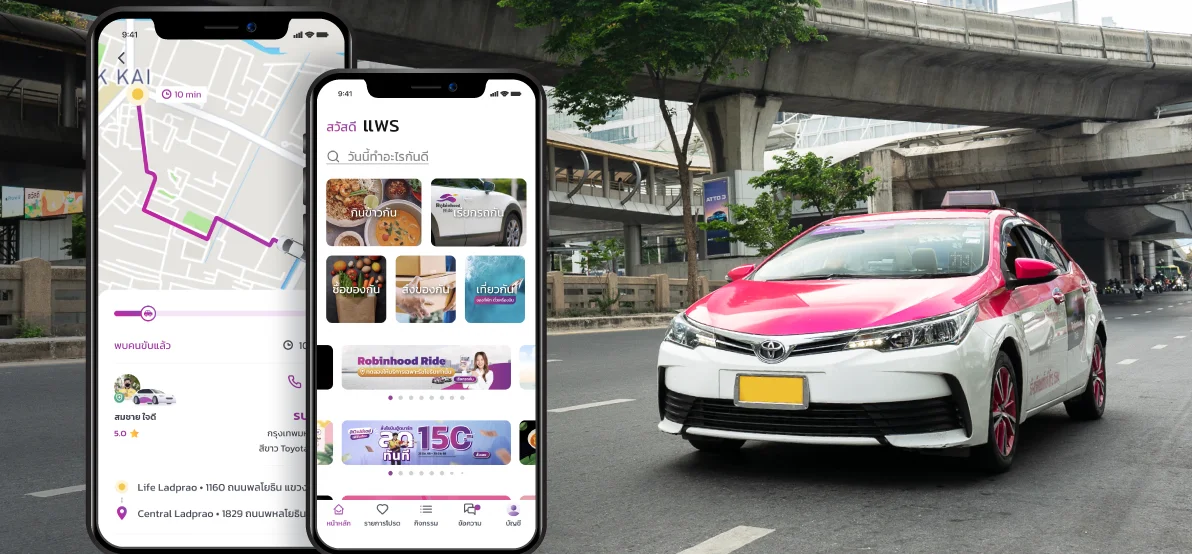 โรบินฮู้ดมีบริการเรียกรถทั้งรถมอเตอร์ไซค์ รถยนต์ และรถแท็กซี่